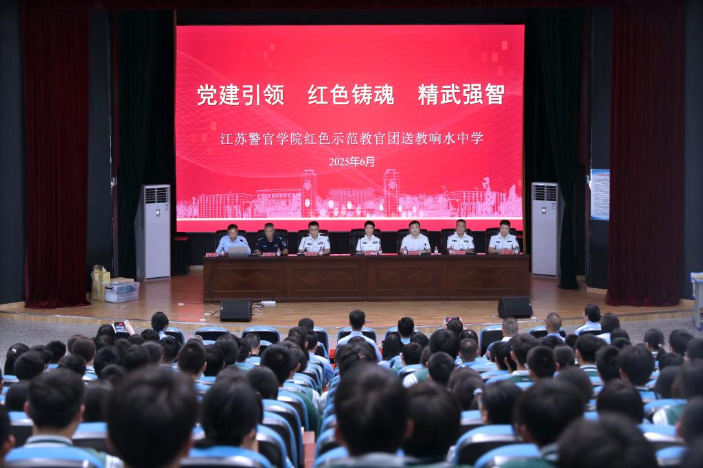 6月23日是“世界运动日”,陈卫一行走进盐城市响水县中小学,围绕“党建引领、红色铸魂、精武强智”,送教送训送爱心,师生同台共讲 “行走的大思政课”。在全国第一所具有海洋教育特色的农村学校昌盛海洋小学,警体部、组宣处、工会向学生赠送爱心包、运动器材、爱心图书,深刻诠释 “向海图强、精忠报国” 校训和 “知海、爱海、卫海、强海”的丰富内涵与爱国情怀。在响水中学,陈卫结合纪念中国人民抗日战争暨世界反法西斯战争胜利80周年,解读《教育强国建设规划纲要(2024-2035年)》重大意义,围绕“珍惜、学习、进取、坚强、爱国”5个词,勉励同学向着建成教育强国、科技强国、人才强国战略目标,锚定时代坐标、奋发努力进取,把个人梦想融入强国建设、民族复兴伟业,并与学生许下成长为担当民族复兴大任时代新人的“十年之约”。政治部、警体部、工会、组宣处向学生赠送体育运动器材、爱心图书,红色示范教官团组织学生开展“精武强智健体魄 迎接挑战锻意志”中华武术、跳绳等学习训练,警体部徐敏潇和学警王敖开展“阳光下的守护”法治安全宣讲,基础部高筱媛和学警翟言嘉开展“争当爱党爱国勤奋好学的新时代好少年”红色文化主题宣讲,博物馆宁军丽组织“指尖的史诗”非遗指画科普活动。现场气氛热烈,学生们积极参与法治精神、红色文化以及非遗艺术等互动学习,在弘扬传承中进一步坚定理想信念、厚植文化自信。