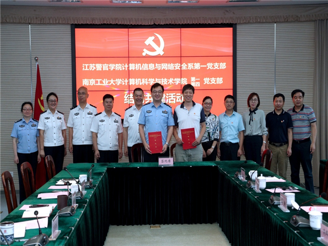 经过细致筹划、精心组织,共建三方举行了我院计算机信息与网络安全系教工第一党支部与南京工业大学计算机学院教工第一、四党支部党建带队建结对仪式,共同签署了共建协议书。南京工业大学组织部、计算机学院党委,学院政治部及组宣处、计算机信息与网络安全系等单位部门负责人出席了此次活动。