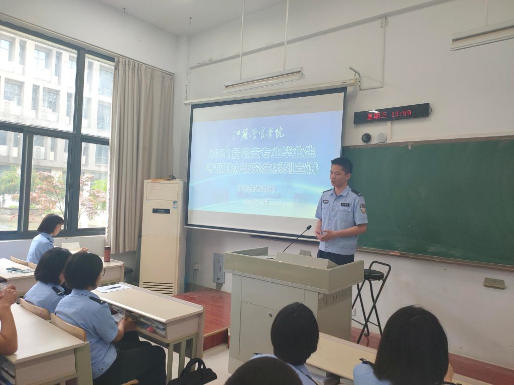 5月24日,支部在2020级治安3区队组织了系列宣讲启动仪式,支部人员详细介绍了我院联办研究生教育和申硕立项建设情况,希望本科生们珍惜时间,认真学习,不断提升自我能力水平。