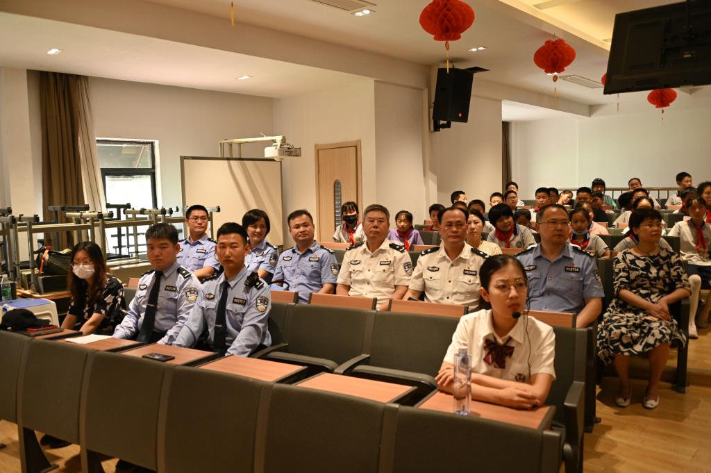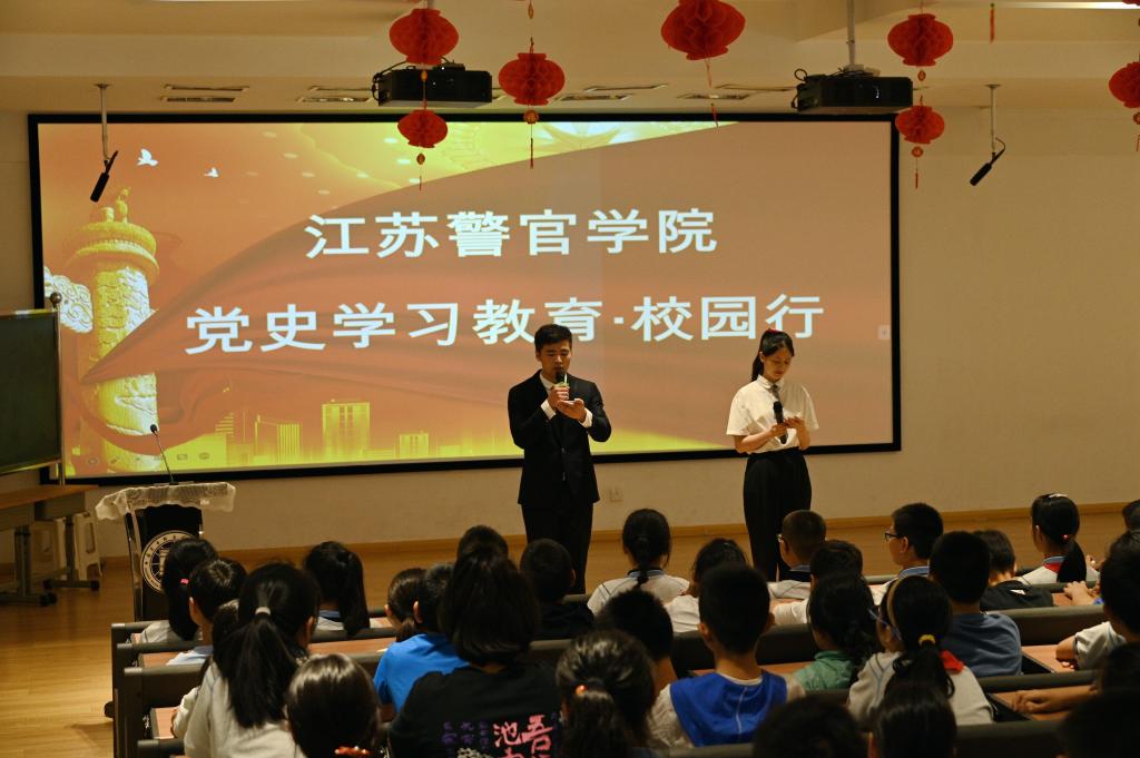 签约揭牌仪式后,开展了首场活动,江苏警官学院安德门校区师生来到南京市瑞金北村小学开展“党史学习教育·校园行”活动,深入学习贯彻习近平总书记给淮安市新安小学回信的重视指示精神,举行中国共产党人精神谱系宣讲,为孩子们表演防范电信诈骗法治情景剧,引导小学生们坚定不移听党话、跟党走,让红色基因、革命薪火代代传承。