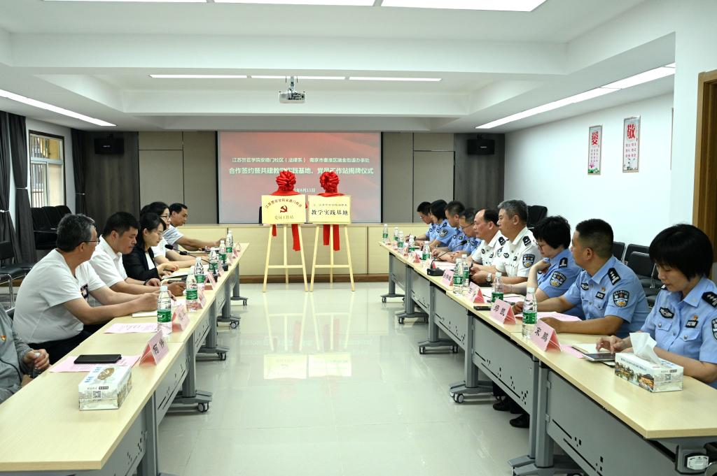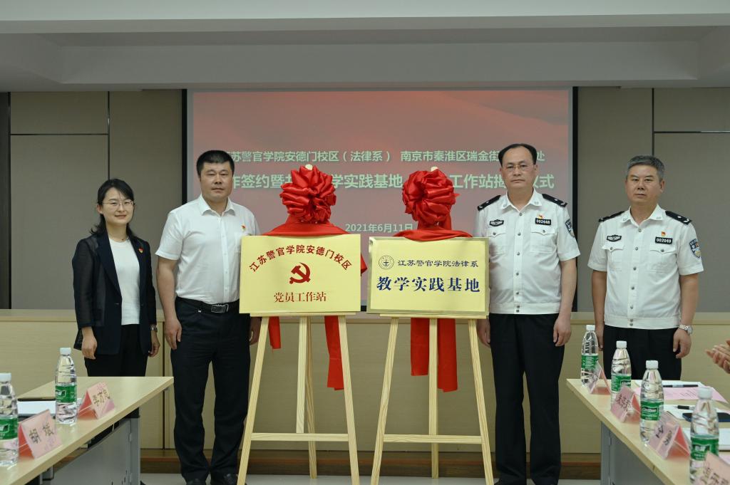 6月11日,江苏警官学院安德门校区与南京市秦淮区瑞金路街道举行共建党员工作站和教学实践基地合作签约暨揭牌仪式,深化校地合作交流,加强党建共建,推动党建与业务工作深度融合,共建共享校地优势资源,服务法学实践教学改革和司法实务工作。