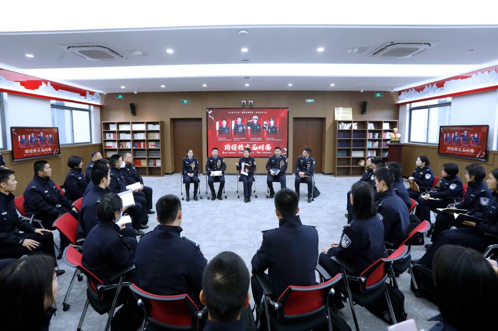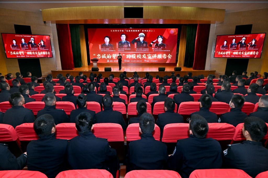 为深入学习贯彻习近平总书记给中国人民公安大学在读英烈子女重要回信精神,弘扬英烈精神、铸牢忠诚警魂,11月17日下午,学院邀请全国公安系统二级英雄模范、高邮市公安局副局长刘玉山,全国公安系统二级英雄模范、宿迁市公安局交通警察支队二大队巡逻二中队中队长张亮亮,全国优秀人民警察、南通市通州区公安局刑警大队副大队长张继秋,全国优秀人民警察、连云港市公安局海州分局新东派出所户政副所长孔静4位英模校友来校,开展“弘扬英烈精神”英模进校园宣讲会暨“功模校友面对面”活动。学院党委副书记陈卫参加活动,与4位英模校友及江苏警官学院小记者团学生代表交流了从学警成长为公安英模需付出的努力与艰辛,讨论了如何更好讲述警察故事、发好公安声音的宣传方法,勉励学警以英模为榜样,立志做有理想、敢担当、能吃苦、肯奋斗的新时代好青年好警察。